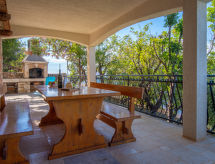 4 odalı daire 80 m2, zemin katta, güney bölgesi. Oturma /yemek odası 22 m2 ile Uydu-TV (LCD ekran), klima. 1 oda ile 1 french bed (160 cm, uzunluk 200 cm), klima. 1 oda ile 1 ikili yatak (2 90 cm, uzunluk 200 cm), duş/WC ve klima. Terasa çıkışlı. Eşya odası. Amerikan mutfak (fırın, 2 cam seramik taban, 2, derin dondurucu, kahve makinesi). Duş/taharetlik/WC. Teras 55 m2 kısmen kapalı. Teras mobilyası, bahçede mangal, şezlong. çok güzel, Deniz manzaralı. Hizmetinize sunulan: çamaşır makinesi. Internet (Wireless LAN, ücretsiz). 1 pet/ dog allowed. Mülkiyet tamamen çitle çevrili. Deniz ve yer manzarası muhteşem. Klima sistemi iyi bir oda sıcaklığı sağlar. Çünkü iyi hissetme faktörü önemli bir rol oynar ve bizim için önemlidir. Hava çalmıyorsa, bir TV de mevcuttur. Ev ayrıca bir fırın ile donatılmıştır.- tesisler