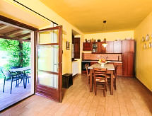 "Stucchio", 2 odalı daire 65 m2, zemin katta. Konforlu ve rustik dayalı döşeli: oturma /yemek odası ile 1 çift kişilik divan yatak, açık şömine ve TV. Verandaya çıkışlı. 1 çift kişilik oda. Yemek pişirme yeri (4 ocak, fırın, mangal). Duş/taharetlik/WC. Gazlı ısıtma (ekstra). 01.11. 15.04. Hizmetinize sunulan: cibinlik, fön makinesi. Internet (Wireless LAN). 1 pet/ dog allowed. Resepsiyonda tatil kiralamanızın anahtarını ve diğer yararlı bilgileri alacaksınız. Kendi evini tekrar pişirebilirsin. Bunu tatile bir aşçıya bırak. Çitlerle çevrili arsa ile. Barbekü için uygundur. Evde ayrıca bir şömine ile donatılmıştır. Bir park yeri var. WLAN (Kablosuz Yerel Alan Ağı) var. Bir fırın mevcuttur.- tesisler