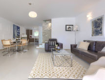 Modern, güzel sira ev "Sv. Ivan 2", üstünde 2 katlı. Münferit köycü evi Sv. Ivan, 4 km ın merkezinde Umag, sakin/sessiz, güneşli yer, 100 m denizden, 100 m kumsaldan. Kullanım için: arsa 500 m2 (çitle çevrili) ile çim. Tek kişilik kullanım için: yüzme havuzu ısıtmalı (2 2 m, 50 cm derin, Sezonluk kullanılabilirlik: 13.Apr. - 12.Oct.). Mangal. Evde: internet kullanımı. Otopark. Marketler 200 m, Restaurant, kayalıklı kumsal 100 m. Golf sahası 15 km, tenis, bisiklet yolu 100 m. Genç grupları sadece sorulduktan sonra. Bölgeyi tanımak için yavaş bir ata binmenizi tavsiye ederiz. At arkadaşlar Umag 'da bekler. Burada bir sonraki tenis maçı için tenis partneri bulacaksınız. Yerler mevcut.Interior