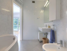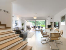 4 odalı sıra evler 160 m2 üstünde 2 kat. Oturma /yemek odası ile açık şömine, Uydu-TV, DVD ve klima. Terasa çıkışlı. Amerikan mutfak (4 ocak, bulaşık makinesi, mikro dalga fırın, derin dondurucu). Duş/WC. Alt kat: ayrı WC. Üst kat: 1 oda ile 1 french bed (160 cm, uzunluk 200 cm), banyo/taharetlik/WC, köşeli küvetli ve klima. Terasa çıkışlı. 1 oda ile 1 french bed (160 cm, uzunluk 200 cm), klima. 1 oda ile 2 adet yatak (90 cm, uzunluk 200 cm), klima. Duş/WC. Kalorifer (ekstra). Teras 20 m2, kapalı, teras 8 m2, kapalı. Teras mobilyası. Deniz manzaralı. Hizmetinize sunulan: Internet (Wireless LAN, ücretsiz). Garaj (2). 1 small pet/ dog allowed. Güzel deniz manzaraları sunar. Evin ayrıca bir havuzu ile donatılmıştır. Özel bir havuz mevcuttur. Ev ayrıca ısıtmalı bir havuz ile donatılmıştır. DVD oynatıcı var.- Konaklama özelliklerinin özellikleri