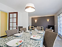 5 odalı ev 100 m2, güney bölgesi. Oturma /yemek odası ile TV ve LCD ekran. Bahçeye çıkışlı. Mutfak (4 ocak, fırın, bulaşık makinesi, mikro dalga fırın). Duş/WC. Üst kat: 3 adet oda, her oda ile 1 french bed (140 cm). 1 oda ile 2 adet yatak (90 cm). Banyo, ayrı WC. Mazotlu ısıtma. Teras mobilyası. Hizmetinize sunulan: çamaşır makinesi. Internet (Wireless LAN, ücretsiz). Dikkat: 1 pet/ dog allowed. Duman dedektörü. Mülkiyet tamamen çitle çevrili. Muhteşem bahçe unutulmaz tatiller vaat ediyor. Bir park yeri mevcuttur. Evin kapalı otoparkı da vardır. Kablosuz bir yerel alan ağı (WLAN) vardır.- Konaklama özelliklerinin özellikleri