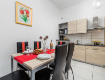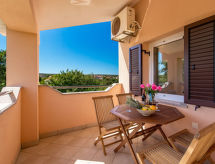 3 odalı daire 43 m2 'de/da 2. kat, güney bölgesi. Oturma /yemek odası 17 m2 ile 1 çift kişilik divan yatak, Uydu-TV ve klima. Balkona çıkışlı. 1 oda ile 1 ikili yatak (2 80 cm, uzunluk 200 cm). 1 oda ile 2 adet yatak (90 cm, uzunluk 200 cm). Amerikan mutfak (bulaşık makinesi, 4 cam seramik taban, mikro dalga fırın, kahve makinesi). Duş/WC. Balkon 14 m2. Balkon mobilyası. Havuz ve Doğa manzaralı. Bir çocuk havuzu var. Bir mikrodalga fırın da mevcuttur.- tesisler