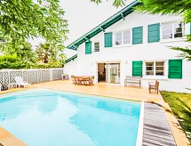 Anglet: Güzel villa "Thalassa". Mevkii Chiberta, sakin/sessiz, güneşli yer yerleşim alanında, 1 km denizden, 1 km kumsaldan. Tek kişilik kullanım için: arsa 500 m2 (çitle çevrili), çim ve bitki, yüzme havuzu ısıtmalı (4 9 m, Sezonluk kullanılabilirlik: 15.May. - 15.Sep.) ile panjurlu. Dış duş, masa tenisi, basket potası, teras, bahçe mobilyası, otopark arsada. Marketler 1.1 km, süper market 2.5 km, Restaurant 800 m, otobüs durağı 290 m, tren istasyonu "Gare SNCF" 6 km, kumsal "Les corsaires" 1 km. Spor alanı 3.9 km, golf sahası 200 m, sörf okulu 1 km, tenis sahası 3.2 km, binicilik 1 km, buz paten alanı 3 km. Gezilecek yerler: Biarritz (phare, aquiarium) 3 km, Halles d'Anglet 1.7 km, Bayonne 5.6 km, San Sebastien 50 km. Gezi yürüyüşleri bölgesi La Rhune 39 km. Lütfen dikkat: havaalanı 6 km evin. Buz pateni bütün aile için harika bir eğlencedir. Yerel buz pateni pistinde fırsatın var. Golf oyunu başlayabilir. Değiş tokuşun yapıldığı yerlerden hangisi olursa olsun, burada büyüleyici manzaraların tam ortasındasınız. Daha önce hiç yapmadıysanız, ata binmek konusunda endişelenmeyin. Binicilik, binicilik ve binicilik için konforlu bir zevktir.Interior