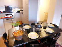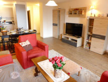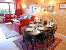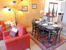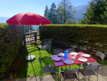 3 odalı daire 68 m2, zemin katta. 2014 yılında kısmen yenilenmiş/bakımı yapılmış, konforlu ve güzel dayalı döşeli: oturma /yemek odası ile kablolu TV (LCD ekran), DVD ve odun sobası. Terasa çıkışlı, güney yönü ve batı yönü. 1 oda, kuzey yönü ile 2 adet yatak (90 cm, uzunluk 200 cm). 1 oda, batı yönü ile 1 x 2 ranza (90 cm, uzunluk 190 cm), 1 çek yat (2 kişi. 2 x 90 cm, uzunluk 190 cm). Amerikan mutfak (fırın, bulaşık makinesi, 4 cam seramik taban, mikro dalga fırın, derin dondurucu, kahve makinesi, Kahve makinası için kapsül (Nespresso) ekstra). Banyo/WC, duş/WC. Büyük teras 12 m2. Teras mobilyası, şezlong 1). Cepheli, Dağ ve Vadi manzaralı. Hizmetinize sunulan: ütü, fön makinesi. Internet (Wireless LAN, ücretsiz). Dikkat: sigara içilmez daireler. Sigara içmek yasaktır. Tatil tesisinde yolcu asansörü vardır. Bir terası vardır. Bir ateş çukuru mevcuttur. Bir park yeri mevcuttur. Bir çamaşır kurutma makinesi mevcuttur. Bir DVD oynatıcı mevcuttur. Bir fırın mevcuttur.- Konaklama özelliklerinin özellikleri