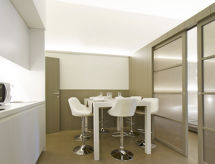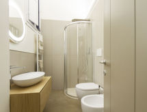"Tipologia Trilo 06 pax", 3 odalı daire 70-e kadar 85 m2. Konforlu ve modern dayalı döşeli: oturma odası ile 1 çift kişilik divan yatak, dijital tv ve klima. 1 çift kişilik oda ile dijital tv ve klima. 1 çift kişilik oda ile dijital tv ve klima. Yemek pişirme yeri (bulaşık makinesi, 4 Endüksiyon ocak tablası, mikro dalga fırın). 2 adet duş/taharetlik/WC. Hizmetinize sunulan: Internet (Wireless LAN, ücretsiz). Kendiliğinden fikirler genellikle duşun altında ortaya çıkar. Belki bu tatilinde yeni romanı ya da şarkısı yaratılır! Neyse, bir duş var. Tatil konaklama kendi resepsiyonu vardır. Konuklarımıza kahvaltı da sunuyoruz. Tatil tesisinde yolcu asansörü vardır. Yazları serinletmek için bu tatil evinde klima vardır. Evde ayrıca bulaşık makinesi bulunur.- Konaklama özelliklerinin özellikleri