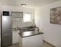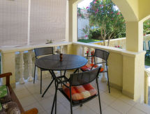 3 odalı ev 65 m2 üstünde 2 kat. 2020 yılında kısmen yenilenmiş/bakımı yapılmış, rahat dayalı döşeli: 1 oda ile 1 french bed (160 cm, uzunluk 200 cm). Amerikan mutfak (fırın, bulaşık makinesi, 2 cam seramik taban, 2, mikro dalga fırın, derin dondurucu, kahve makinesi) ile yemek masası, Uydu-TV ve klima. Duş/WC. Üst kat: (dış merdiven) oturma odası ile 1 çift kişilik divan yatak (130 cm, uzunluk 200 cm), Uydu-TV ve klima. 1 oda ile 1 french bed (160 cm, uzunluk 200 cm). Küçük, amerikan mutfak (2 ocak, kahve makinesi). Duş/WC. Balkon 4 m2, teras 10 m2, kapalı. Teras mobilyası. Hizmetinize sunulan: Internet (Wireless LAN, ücretsiz). Klima sistemi iyi bir oda sıcaklığı sağlar. Çünkü iyi hissetme faktörü önemli bir rol oynar ve bizim için önemlidir. Evin ayrıca bir balkonu vardır.- tesisler