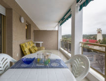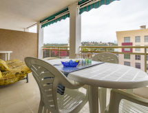 La Pineda 2 km Salou: Rahat apartman "Turquesa". Güneşli yer, mükemmel yer: kesinlikle merkezi fakat yine de sessiz, 300 m denizden, 300 m kumsaldan. Kullanım için: yüzme havuz köşegen (Sezonluk kullanılabilirlik: 24.Jun. - 15.Sep.). çocuk havuzu, dış duş. Evde: asansör. Açık otoparklar caddede. Marketler 100 m, süper market 200 m, Restaurant, Bar 100 m, otobüs durağı 300 m. Golf sahası 100 m. Gezilecek yerler: parque temático Portaventura 2 km, parque acuático Aquopolis 500 m, Spa Aquum 500 m. Genç grupları sadece sorulduktan sonra. Tesis cazip bir yelken bölgesinde bulunmaktadır. Rüzgar enerjisi kullanarak zevkli hareketin tadını çıkarın.Interior