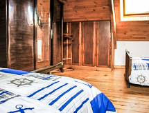 3 odalı sıra evler 80 m2 üstünde 2 kat. Amaca uygun ve rustik dayalı döşeli: oturma /yemek odası 25 m2 ile yemek köşesi, TV ve DVD. Bahçeye, terasa çıkışlı. Yemek pişirme yeri (4 ocak, fırın, mikro dalga fırın, kahve makinesi) ile Bar. Banyo/WC. Üst kat: 1 çatı tavan oda ile 1 french bed (140 cm, uzunluk 190 cm). 1 çatı tavan oda ile çatı penceresi ile 1 yatak (90 cm, uzunluk 190 cm), 1 french bed (1 140 cm, uzunluk 190 cm). Duş/WC. Kalorifer. Teras. Teras mobilyası, bahçede mangal (mobil), şezlong. Hizmetinize sunulan: çamaşır makinesi, ütü, çocuk yatağı, fön makinesi. Park yeri. Dikkat: sigara içilmeyen ev. Evde ayrıca bir DVD oynatıcı vardır.- Konaklama özelliklerinin özellikleri