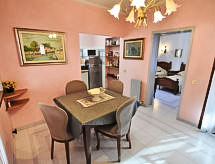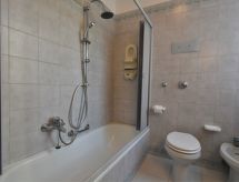 3 odalı daire 80 m2 'de/da 1. kat. Aydınlık, amaca uygun ve konforlu dayalı döşeli: açık büyük oturma /yemek odası ile 1 duvar dolaplı yatak (80 cm, uzunluk 190 cm), yemek masası ve TV. Balkona çıkışlı. Birbirine bağlı oda ile 2 adet yatak. 1 büyük çift kişilik oda. Amerikan mutfak (fırın, bulaşık makinesi, 4, mikro dalga fırın, derin dondurucu). Banyo/taharetlik/WC. Kalorifer. Balkon mobilyası, kiler. Hizmetinize sunulan: çamaşır makinesi, ütü, fön makinesi. Internet (Wireless LAN, ücretsiz). IP0270420980 Evde banyo. WLAN (Kablosuz Yerel Alan Ağı) var.- tesisler