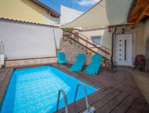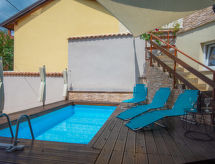 6 odalı ev 124 m2 üstünde 2 kat. Oturma /yemek odası ile 1 divan (120 cm, uzunluk 190 cm), mutfak tezgahı ve Uydu-TV (LCD ekran), klima. Yemek odası. Amerikan mutfak (2 ocak, mikro dalga fırın, kahve makinesi). Üst kat: giriş ile klima. 1 oda ile çatı penceresi ile 1 french bed (160 cm, uzunluk 200 cm). 1 oda ile çatı penceresi ile 2 adet yatak (90 cm, uzunluk 200 cm). Oturma odası ile 1 çift kişilik divan yatak (140 cm, uzunluk 190 cm), Uydu-TV (LCD ekran), klima. Terasa çıkışlı. 1 oda ile 1 french bed (160 cm, uzunluk 200 cm). 1 oda ile 1 yatak (90 cm, uzunluk 200 cm). 2 adet duş/WC, 2 adet ayrı WC. Teras 16 m2. Teras mobilyası, bahçede mangal (mobil), şezlong 3 adet). Hizmetinize sunulan: kasa, çocuk yemek sandalyesi, çocuk yatağı, fön makinesi. Internet (Wireless LAN, ücretsiz). Etkileyici ısı, beden ve zihin üzerinde ağır bir yük yaratabilir. Bu nedenle, tesis klima ile donatılmıştır. Ev ayrıca bir teras ile donatılmıştır. Özel bir havuzu var. Çamaşır makinesi sayesinde taşınacak daha az kıyafet bulacaksınız.- tesisler