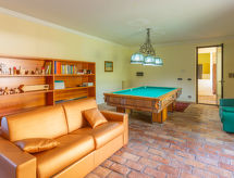 Çok güzel, konforlu villa "Vidal", çevrili ağaçlar ve çimen. 2.5 km ın merkezinde Spoltore, 8 km in merkezinde Pescara, yalnız yer, 10 km denizden, yeşillikler içinde. Tek kişilik kullanım için: büyük, bakımlı bahçe 2'500 m2 (çitle çevrili) ile çim ve ağaçlar, yüzme havuzu (10 5 m, 100 - 250 cm derin, Sezonluk kullanılabilirlik: 15.Apr. - 15.Oct.). Dış duş, masa tenisi, Boccia. Evde: bilardo. Otopark arsada. Süper market 2.5 km, tren istasyonu "Pescara" 7 km. Yat limanı 10 km, golf sahası (18 delik) 22 km. Genç grupları sadece sorulduktan sonra.Interior