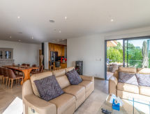 Büyük, modern villa, yapım yılı 2022. Aşağısında Borivoli, yörenin dışında. 5 km in merkezinde Sotta, sakin/sessiz yer bayırda, trafiksiz bölge, 12 km denizden, çıkmaz sokakta. Tek kişilik kullanım için: sit alanı arsa 800 m2. Evde: klima sistemi. 100 m uzun/boyunca dik giriş e kadar eve. Otopark (için 3 arabalar) evin orda. Marketler 5 km, alışveriş merkezi 15 km, fırın 5 km, kumsal "Plage de Santa Giulia" 15 km. Spor alanı 15 km. Gezilecek yerler: Village de Sotta 5 km, Centre ville Porto-Vecchio 15 km, Plage de Palombaggia 20 km, Plage de Santa Giulia 15 km, Citadelle de Bonifacio 29 km. Yöredeki tanınmış göller kolay erişilebilir: Lac de l'Ospédale 30 km. Gezi yürüyüşleri bölgesi Sentier des Bruzzi 24 km, Aiguilles de Bavella 50 km. Lütfen dikkat: araç önerilir.Interior