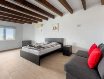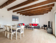4 odalı dupleksin yarısı 165 m2, zemin katta. Amaca uygun ve konforlu dayalı döşeli: oturma /yemek odası ile Uydu-TV, dijital tv, Radio, CD ve müzik seti. Terasa, havuza çıkışlı. 3 adet oda, her oda ile 1 ikili yatak (160 cm, uzunluk 200 cm). Amerikan mutfak (fırın, bulaşık makinesi, 4 cam seramik taban, mikro dalga fırın, derin dondurucu, kahve makinesi). 3 adet banyo. Teras mobilyası. Deniz manzaralı. Hizmetinize sunulan: ütü, çocuk yemek sandalyesi, çocuk yatağı, fön makinesi. Internet (Wireless LAN). Dikkat: sigara içilmeyen ev. Özel giriş, özel giriş. Topluluk havuzu özel kullanım için mevcuttur. VV -35 / 2 / Deniz manzaralıdır. Bebek karyolası mevcuttur. Özel bir havuz mevcuttur. Bir çamaşır kurutma makinesi vardır.- tesisler