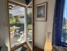 3 odalı ev 70 m2, zemin katta. Rahat dayalı döşeli: oturma /yemek odası ile Uydu-TV (LCD ekran), Radio. 1 oda ile 2 adet yatak (90 cm, uzunluk 200 cm). 1 oda ile 1 ikili yatak (2 100 cm, uzunluk 200 cm). Amerikan mutfak (fırın, bulaşık makinesi, mikro dalga fırın, kahve makinesi). Duş/WC. Teras. Teras mobilyası. Hizmetinize sunulan: çocuk yemek sandalyesi. Internet (Wireless LAN). Park yeri, garaj. Dikkat: sigara içilmez daireler. Dairede sigara içmek yasaktır.- tesisler